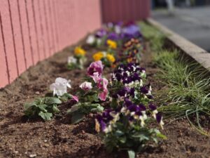 今年度も緑の募金事業を活用し、高田体育館南側の花壇整備を行いました。